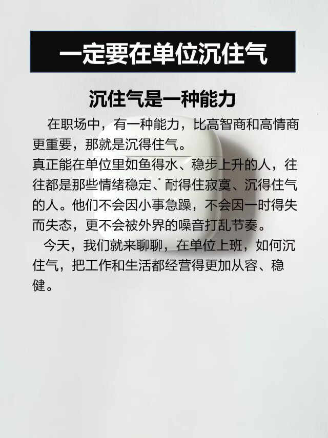 今天,我们就来聊聊,在单位上班,如何沉住气,把工作和生活都经营得更加从容、稳健。