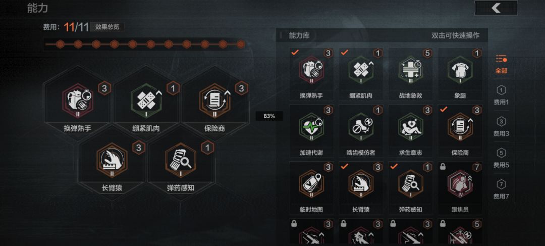 先锋在完成一定任务后可解锁不同价值的战术能力。战术能力会根据其效果的不同拥有不同的费用,先锋可以自行搭配至多5个战术能力,战术能力的总费用上限为11点。体验服战术能力将提前全部开放解锁并预装,先锋可提前体验。