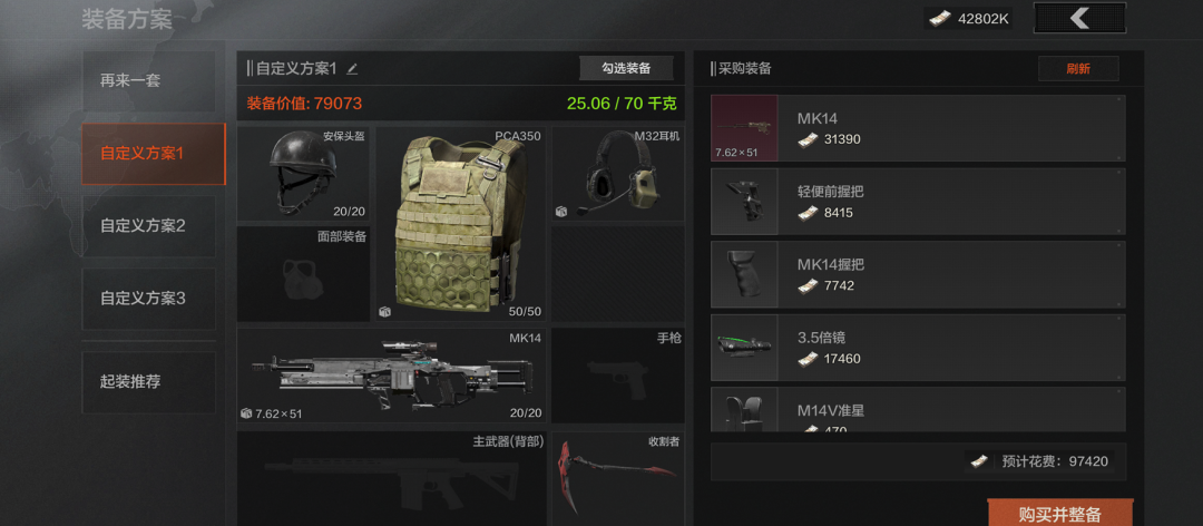 新增整备装备方案页签,先锋可最多保存三套装备方案。